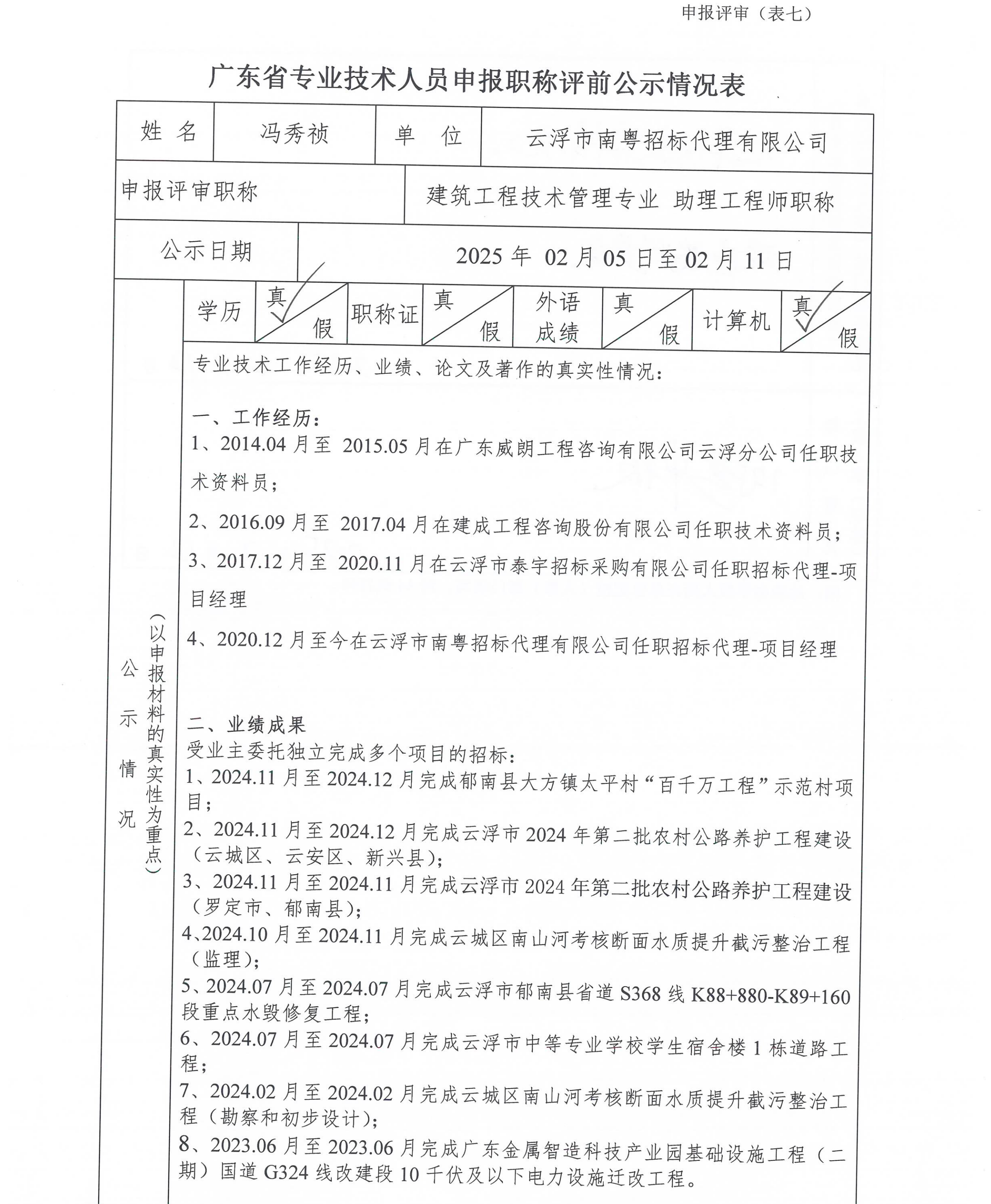 廣東省專業技術人員申報職稱評前公示情況